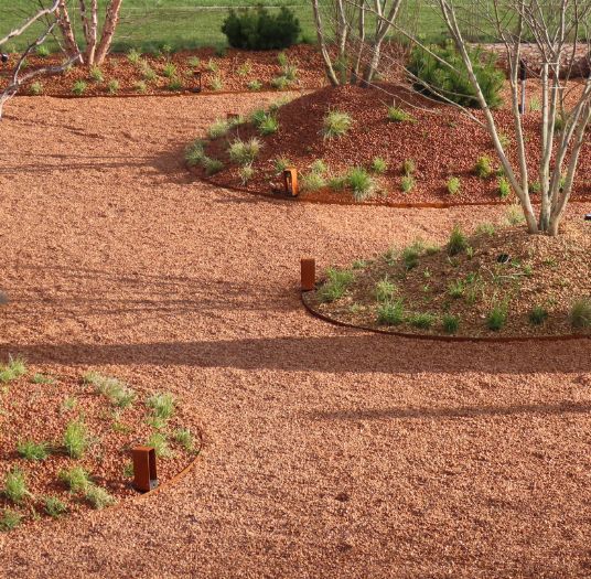 - Allées et chemins de jardin – pas de gravier qui se déplace ni de dépôts verts, mais une base solide et naturelle qui conserve son aspect esthétique. Parfaitement combinable avec nos dalles alvéolées.